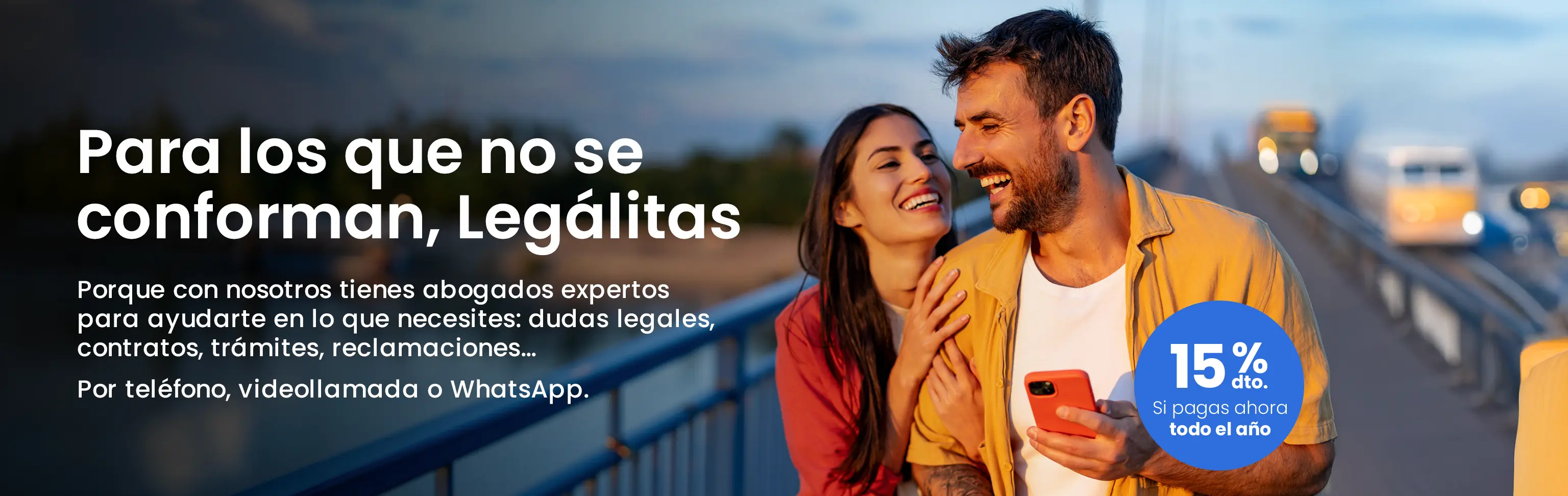 Servicio de duración anual para asesoramiento jurídico sobre asuntos de la vida familiar (no empresarial ni profesional) del cliente. Contigo: precio anual 238,80 €, cuota mensual 19,90 €. Contigo Plus: precio anual: 358,80 €, cuota mensual: 29,90 €. Contigo Premium: precio anual: 546 €, cuota mensual: 45,50 €. Consulte las condiciones generales en www.legalitas.com